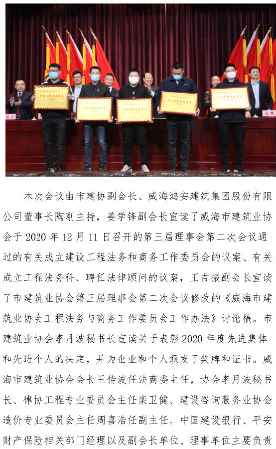 威海市建筑業(yè)協(xié)會召開法務(wù)商委委員會 成立會議暨2020年度總結(jié)表彰大會