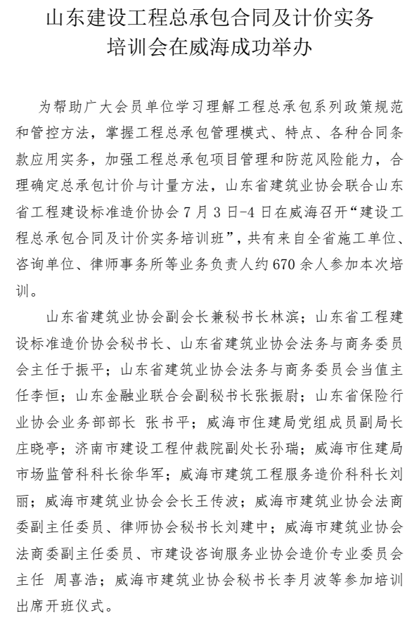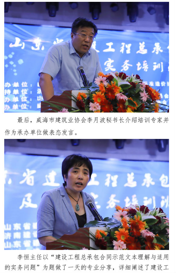 >山東建設(shè)工程總承包合同及計價實務(wù)培訓(xùn)會在威海成功舉辦