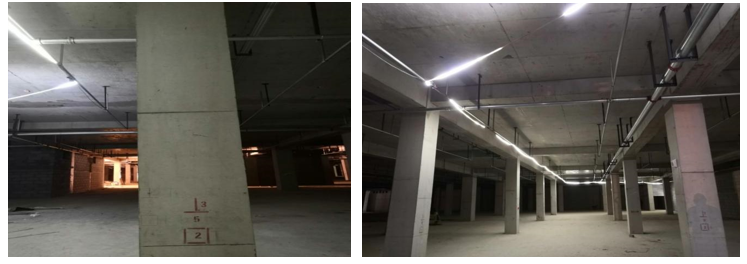 3.5、生產廠房地面及地下車庫混凝土地面大面積施工,施工精細,分隔縫通順,細部處理良好,大型機械設備進場使用至今無開裂鼓凸等問題。