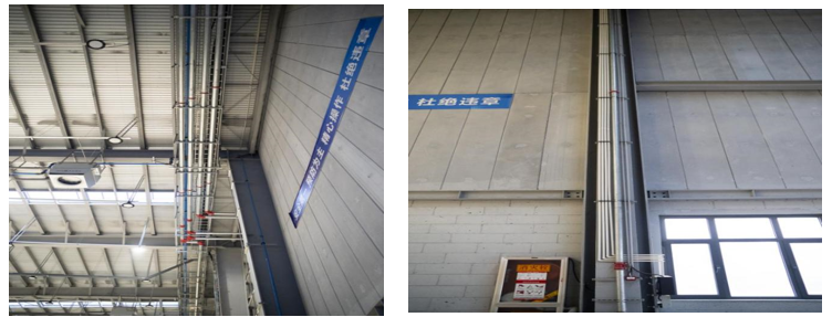 (1)PPR給水管道、熱鍍鋅消防管道、硬聚氯乙烯排水管道管道坡度合理、安裝牢固,經(jīng)通水、通球試驗檢測合格,無滲漏、堵塞情況。采暖、通風管道連接平直,圓弧均勻。電纜橋架及管線安裝橫平豎直、排列有序。