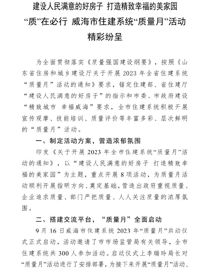 >建設(shè)人民滿意的好房子 打造精致幸福的美家園 “質(zhì)”在必行 威海市住建系統(tǒng)“質(zhì)量月”活動精彩紛呈