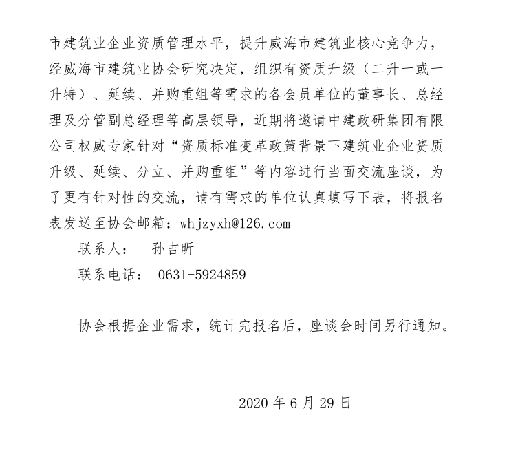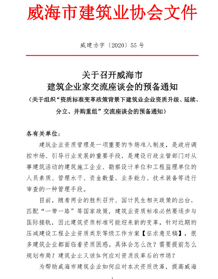 關(guān)于召開威海市建筑企業(yè)家交流座談會的預(yù)備通知