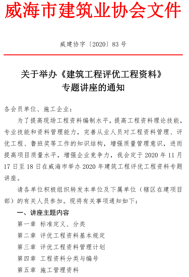 >關(guān)于舉辦《建筑工程評優(yōu)工程資料》專題講座的通知