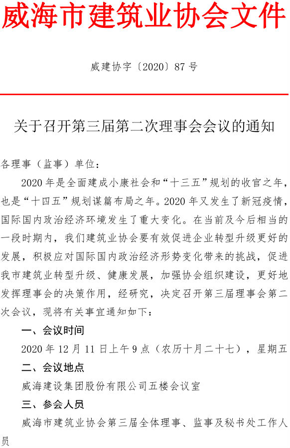 >關(guān)于召開第三屆第二次理事會會議的通知