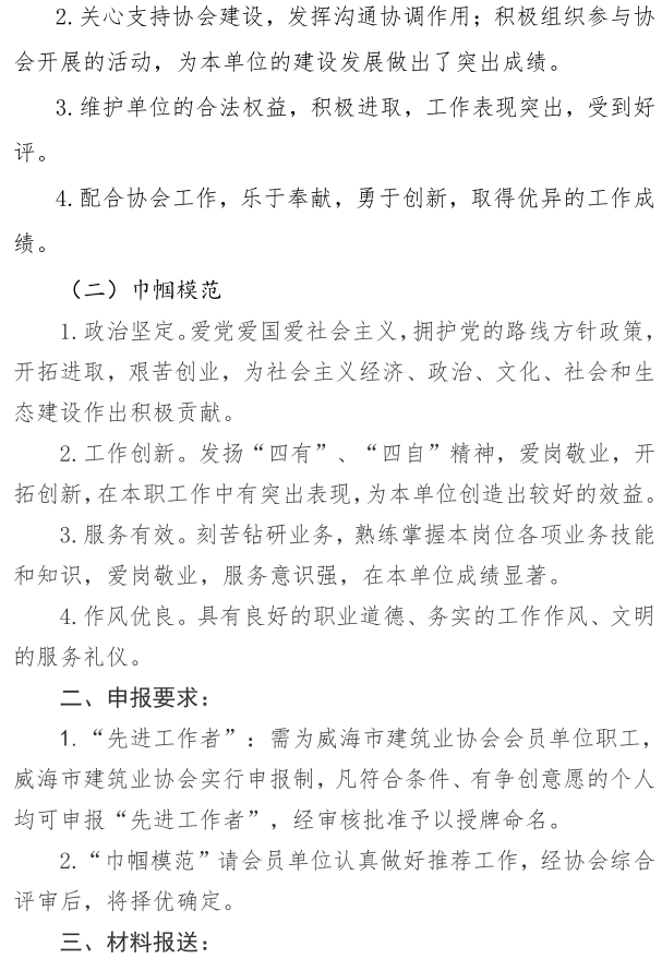 關(guān)于開展2020年度威海市建筑業(yè) “先進工作者”“巾幗模范”的通知