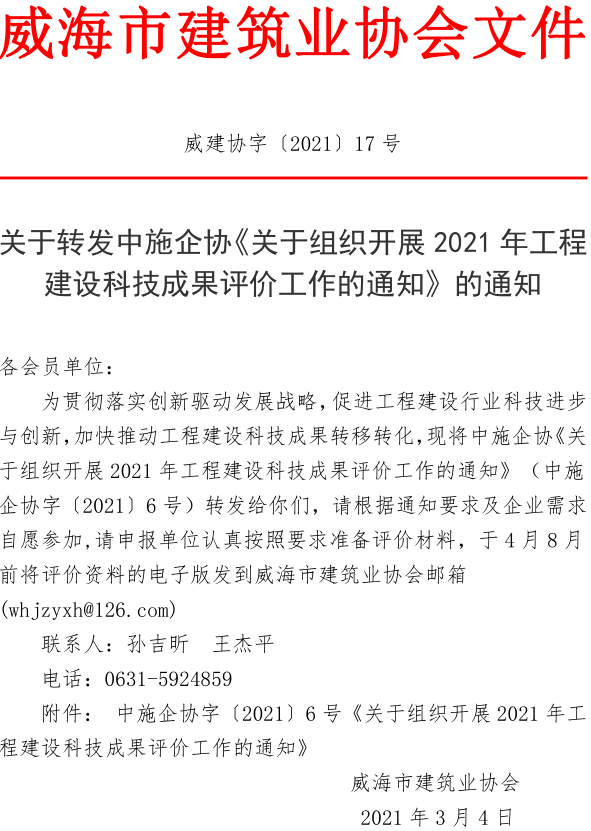 關(guān)于轉(zhuǎn)發(fā)中施企協(xié)《關(guān)于組織開展2021年工程建設(shè)科技成果評價(jià)工作的通知》的通知