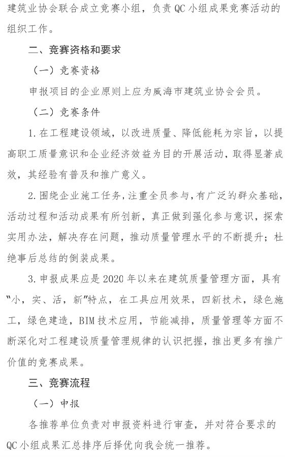 >關(guān)于開(kāi)展2021年度威海市建筑業(yè)QC小組成果競(jìng)賽的通知
