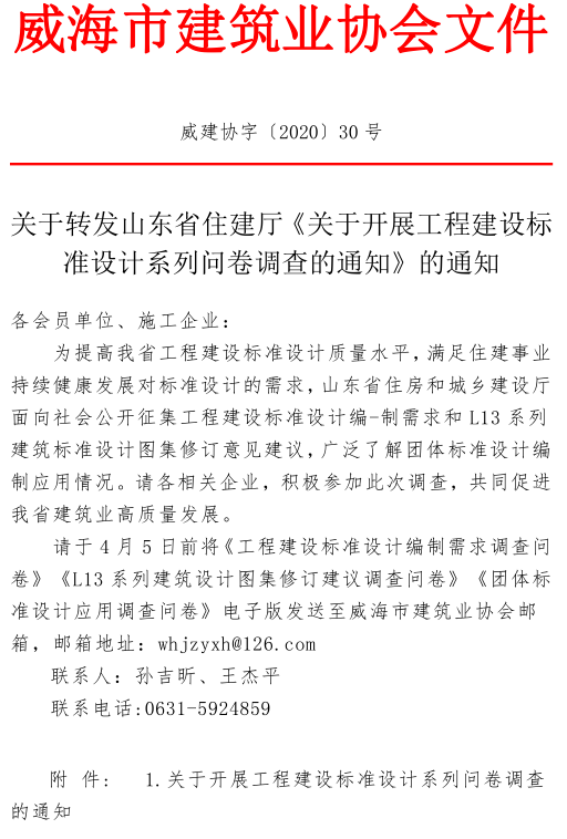 - 當(dāng)前位置:首頁(yè) >文件公告>關(guān)于轉(zhuǎn)發(fā)山東省住建廳《關(guān)于開(kāi)展工程建設(shè)標(biāo)準(zhǔn)設(shè)計(jì)系列問(wèn)卷調(diào)查的通知》的通知