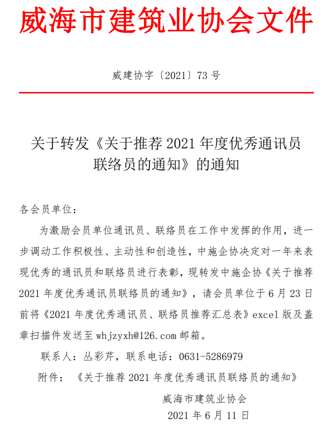 關(guān)于轉(zhuǎn)發(fā)《關(guān)于推薦2021年度優(yōu)秀通訊員 聯(lián)絡(luò)員的通知》的通知