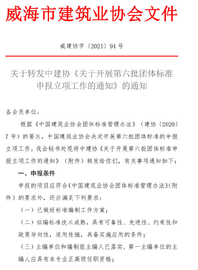 關于轉(zhuǎn)發(fā)中建協(xié)《關于開展第六批團體標準 申報立項工作的通知》的通知 ?
