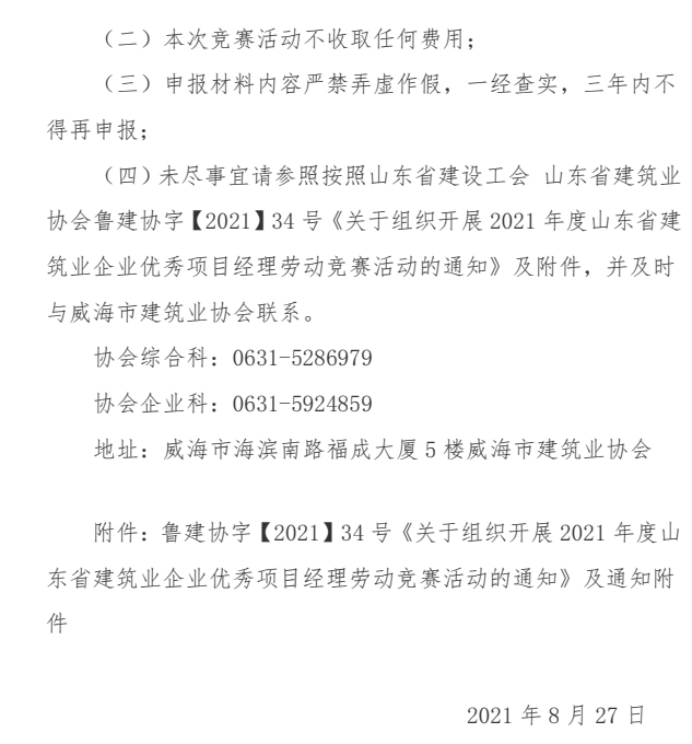 關(guān)于開展2021年山東省建筑業(yè)企業(yè)優(yōu)秀 項(xiàng)目經(jīng)理勞動(dòng)競(jìng)賽活動(dòng)(市級(jí)選拔賽)的通知