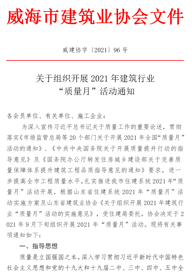 關(guān)于組織開展2021年建筑行業(yè) “質(zhì)量月”活動(dòng)通知