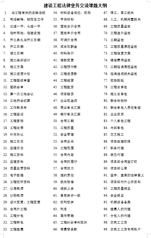 建設(shè)工程法律業(yè)務(wù)交流課題大綱.docx