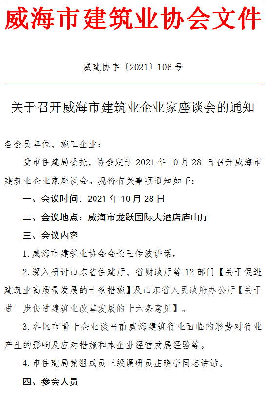 >關(guān)于召開威海市建筑業(yè)企業(yè)家座談會(huì)的通知