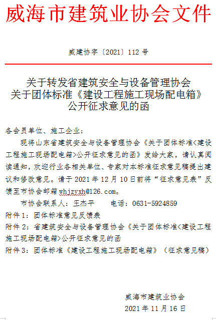 附件2:省建筑安全與設(shè)備管理協(xié)會《關(guān)于團體標準建設(shè)工程施工現(xiàn)場配電箱公開征求意見的函.zip