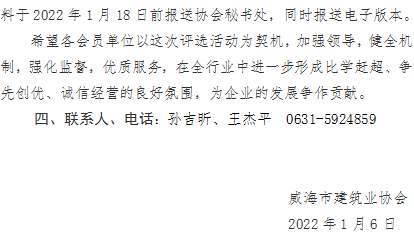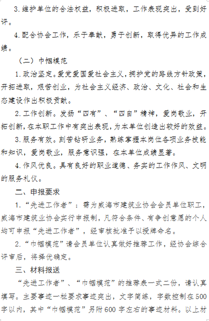 >關(guān)于開展2021年度威海市建筑業(yè)“先進(jìn)工作者”“巾幗模范”的通知