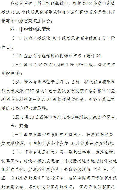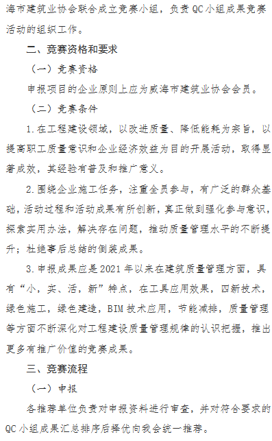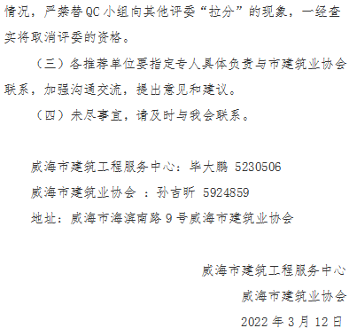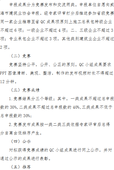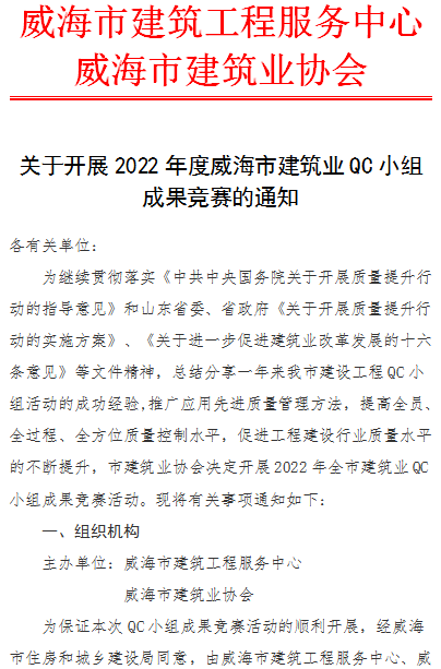 關(guān)于開展2022年度威海市建筑業(yè)QC小組成果競賽的通知