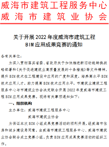 >關(guān)于開展2022年度威海市建筑工程BIM應(yīng)用成果競賽的通知
