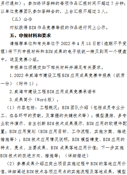 關(guān)于開展2022年度威海市建筑工程BIM應(yīng)用成果競賽的通知