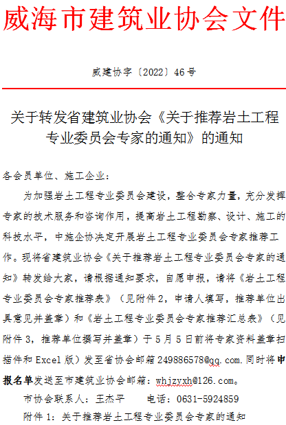 關(guān)于轉(zhuǎn)發(fā)省建筑業(yè)協(xié)會(huì)《關(guān)于推薦巖土工程專(zhuān)業(yè)委員會(huì)專(zhuān)家的通知》的通知