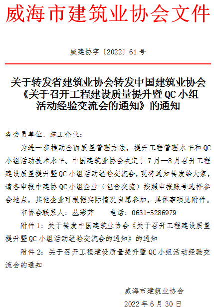 >轉發(fā)省建筑業(yè)協(xié)會轉發(fā)中國建筑業(yè)協(xié)會《關于召開工程建設質量提升暨QC小組活動經驗交流會的通知》的通知