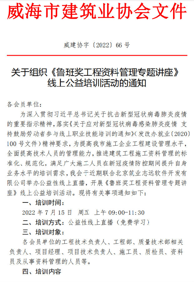 >關(guān)于組織《魯班獎工程資料管理專題講座》 線上公益培訓(xùn)活動的通知