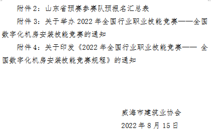 關(guān)于轉(zhuǎn)發(fā)省建筑業(yè)協(xié)會關(guān)于舉辦2022年全國行業(yè)職業(yè)技能競賽——全國數(shù)字化機房安裝技能競賽(山東省預(yù)賽)的預(yù)報名通知