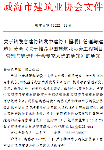 關(guān)于轉(zhuǎn)發(fā)省建協(xié)轉(zhuǎn)發(fā)中建協(xié)工程項(xiàng)目管理與建造師分會(huì)《關(guān)于推薦中國建筑業(yè)協(xié)會(huì)工程項(xiàng)目管理與建造師分會(huì)專家人選的通知》的通知