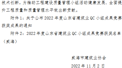 附件1:關(guān)于公布2022年度山東省建筑業(yè)QC小組成果競賽獲獎(jiǎng)成果的通知.pdf