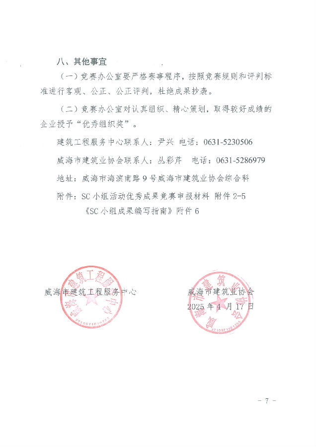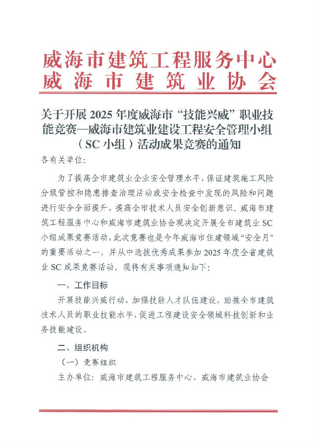 關(guān)于開(kāi)展2025年度威海市“技能興威”職業(yè)技能競(jìng)賽—威海市建筑業(yè)建設(shè)工程安全管理小組(SC小組)活動(dòng)成果競(jìng)賽的通知