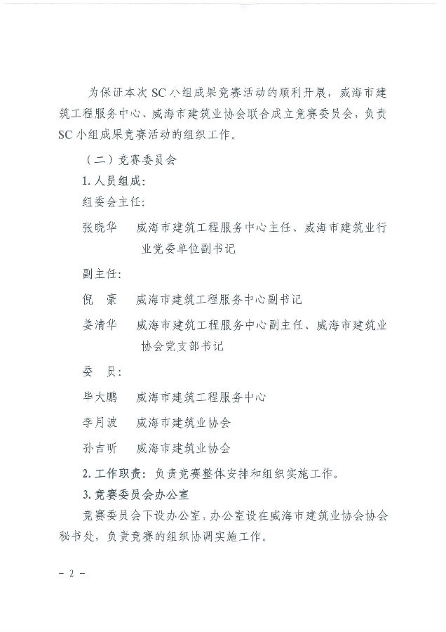 - 當(dāng)前位置:首頁(yè) >文件公告>關(guān)于開(kāi)展2025年度威海市“技能興威”職業(yè)技能競(jìng)賽—威海市建筑業(yè)建設(shè)工程安全管理小組(SC小組)活動(dòng)成果競(jìng)賽的通知