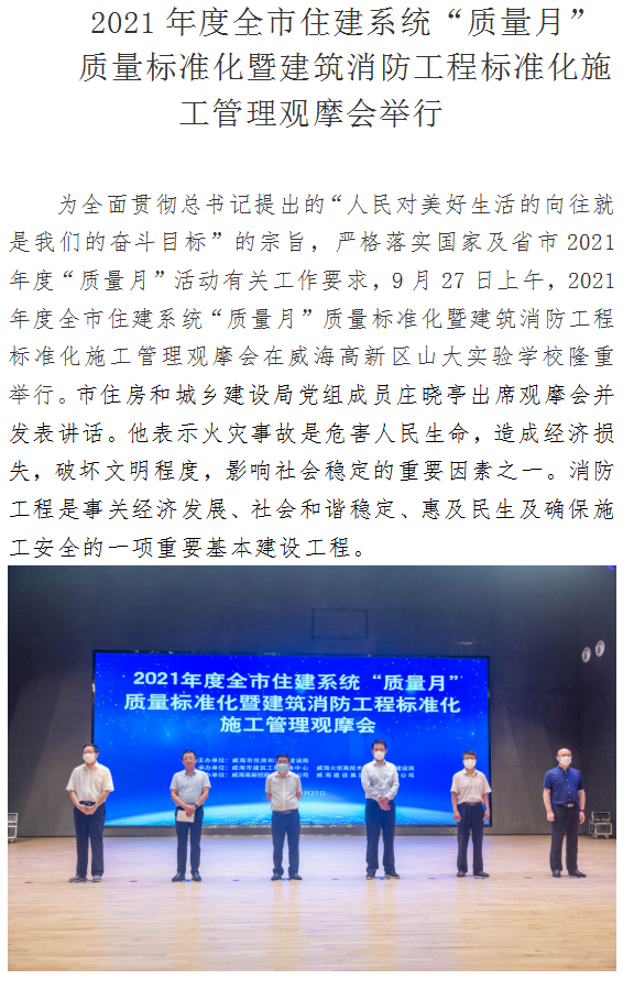2021年度全市住建系統(tǒng)“質(zhì)量月” 質(zhì)量標(biāo)準(zhǔn)化暨建筑消防工程標(biāo)準(zhǔn)化施工管理觀摩會(huì)舉行