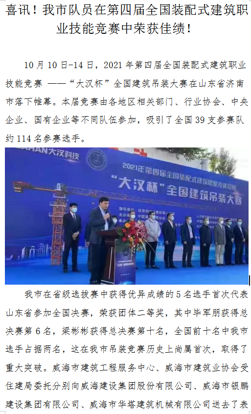 >喜訊!我市隊(duì)員在第四屆全國(guó)裝配式建筑職業(yè)技能競(jìng)賽中榮獲佳績(jī)!