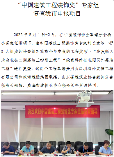 >“中國建筑工程裝飾獎(jiǎng)”專家組復(fù)查我市申報(bào)項(xiàng)目(幕墻)