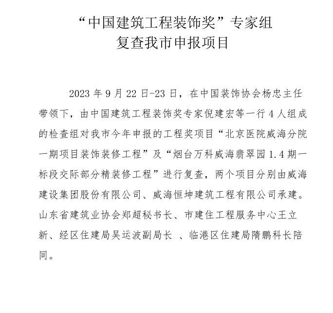 “中國建筑工程裝飾獎”專家組 復查我市申報項目