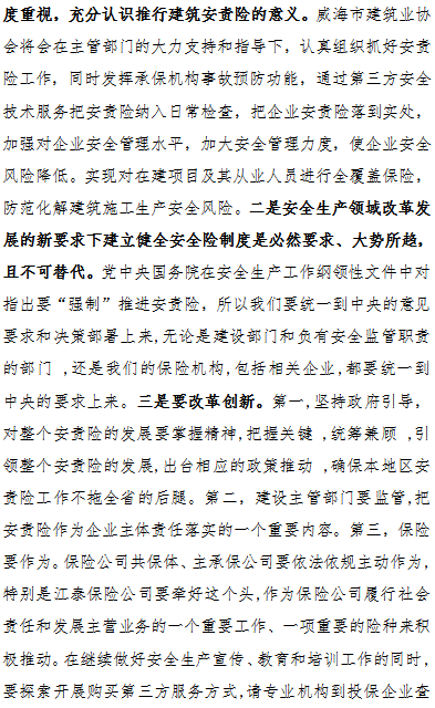 >威海市建筑施工行業(yè)安責(zé)險(xiǎn)培訓(xùn)會(huì)議順利召開